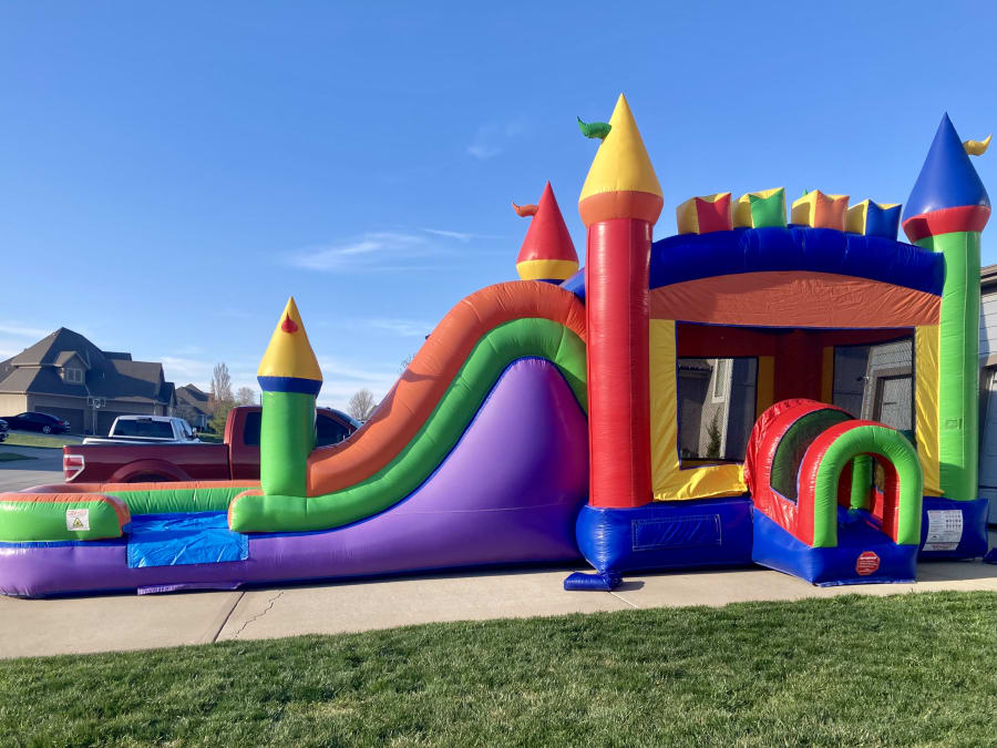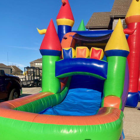 Have a royal party with this oversized Castle Combo with Slide. This bouncy has a extra large bounce area and a extra wide slide to maximize fun.