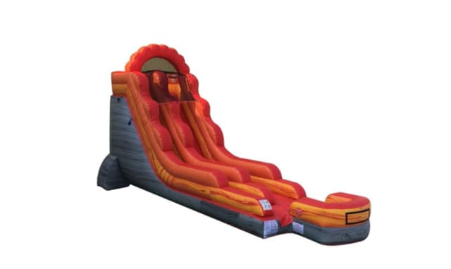 Dazzle kids and parents at your next big event with the 18' tall Fire Inflatable Slide. The slide stretches out to 35 feet in length for some big-time thrills and a whole lot of excitement. Try out this inflatable slide on a cool day without water for some fun and entertainment or rent as a wet slide and simply connect a standard garden hose to the built-in misting system and dive into some refreshing relief from the summer heat!